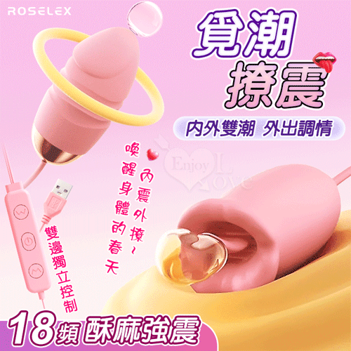 ROSELEX 勞樂斯 ‧ 覓潮 18段變頻舌撩+震動 雙邊獨立控制雙跳蛋﹝USB直插供電款﹞粉