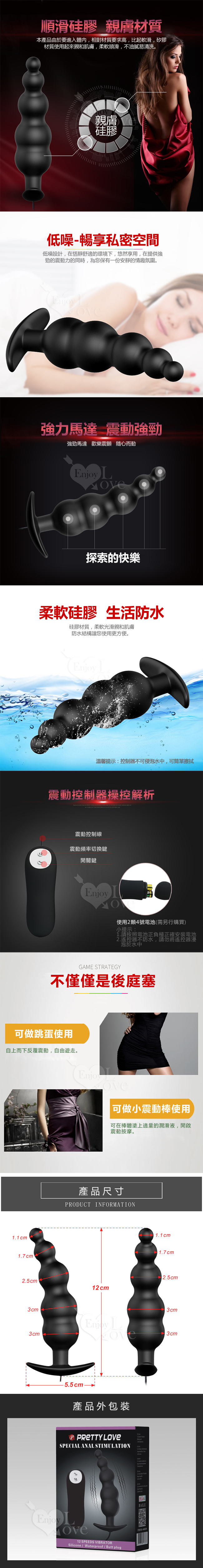 PRETTY LOVE 派蒂菈‧翻滾吧!後庭 5連珠+12頻震動按摩器