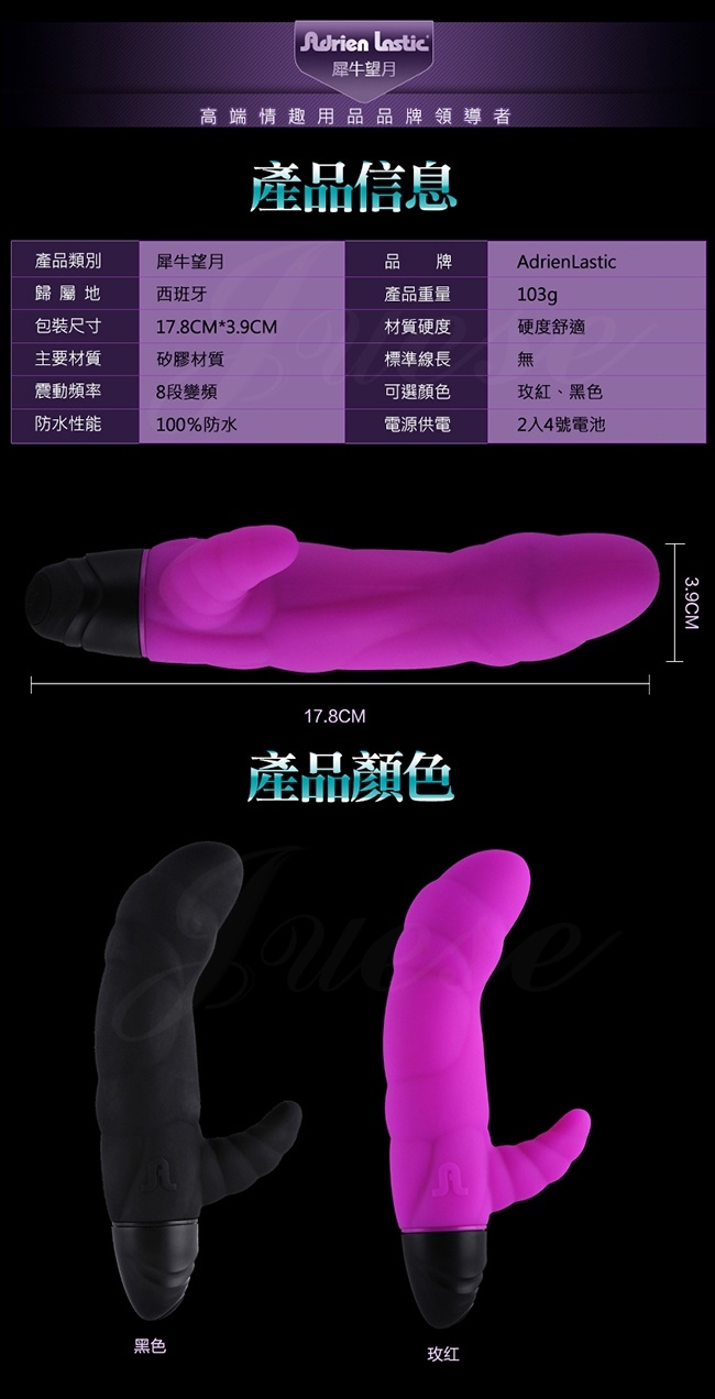 ►您現在的位置:首頁>西班牙Adrien Lastic-犀牛Typhoon 雙重快感 雙馬達8頻震動G點按摩棒-黑