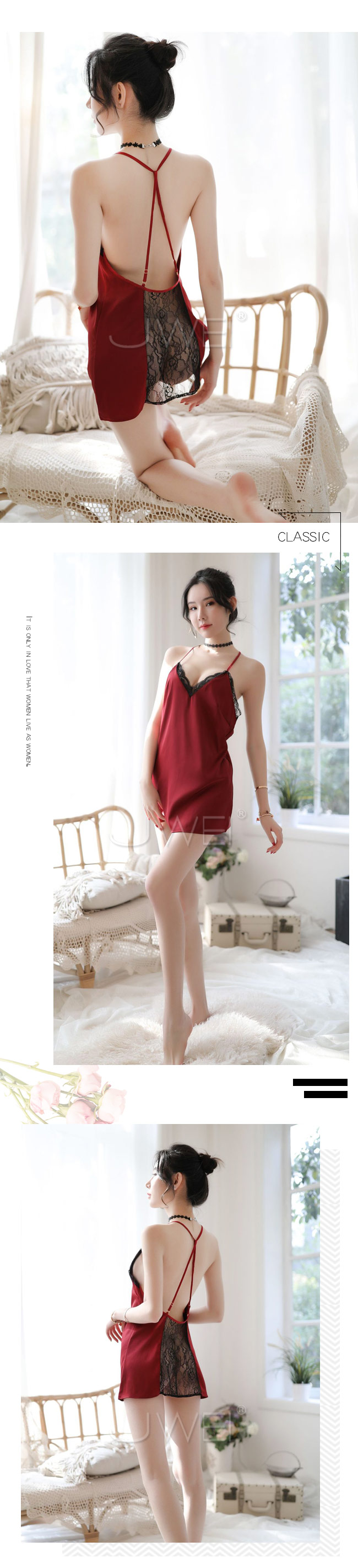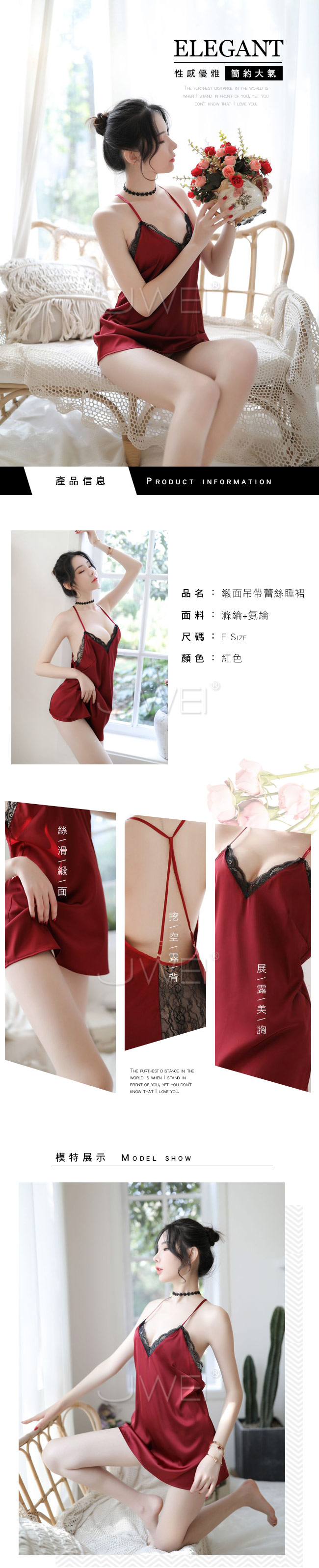 熟女韻味.緞面吊帶蕾絲情趣睡衣(紅)