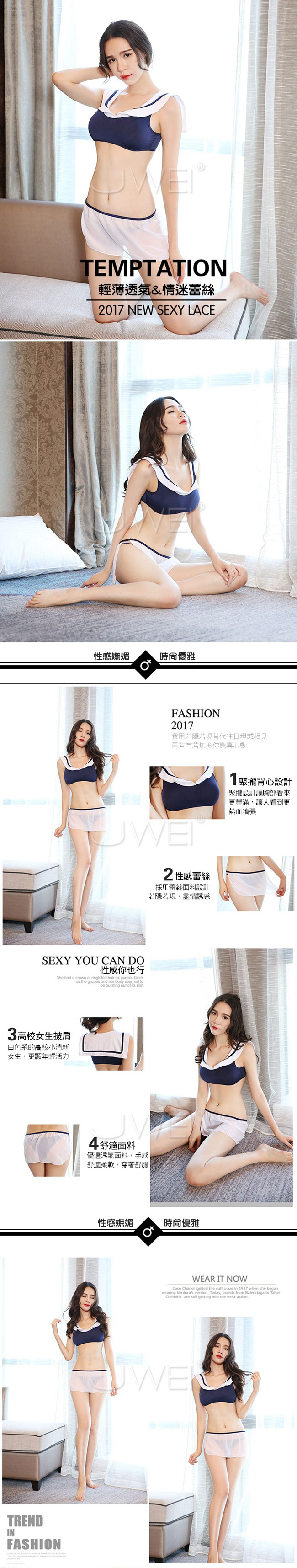 聚攏背心讓胸部看來更豐滿, 搭配透視薄紗短裙盡情誘惑, 白色高校披肩顯的更年輕更惹人憐惜