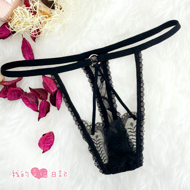 | ﹝七款顏色﹞溫柔暗號!前交叉細帶滾邊蕾絲網紗中腰T字褲
