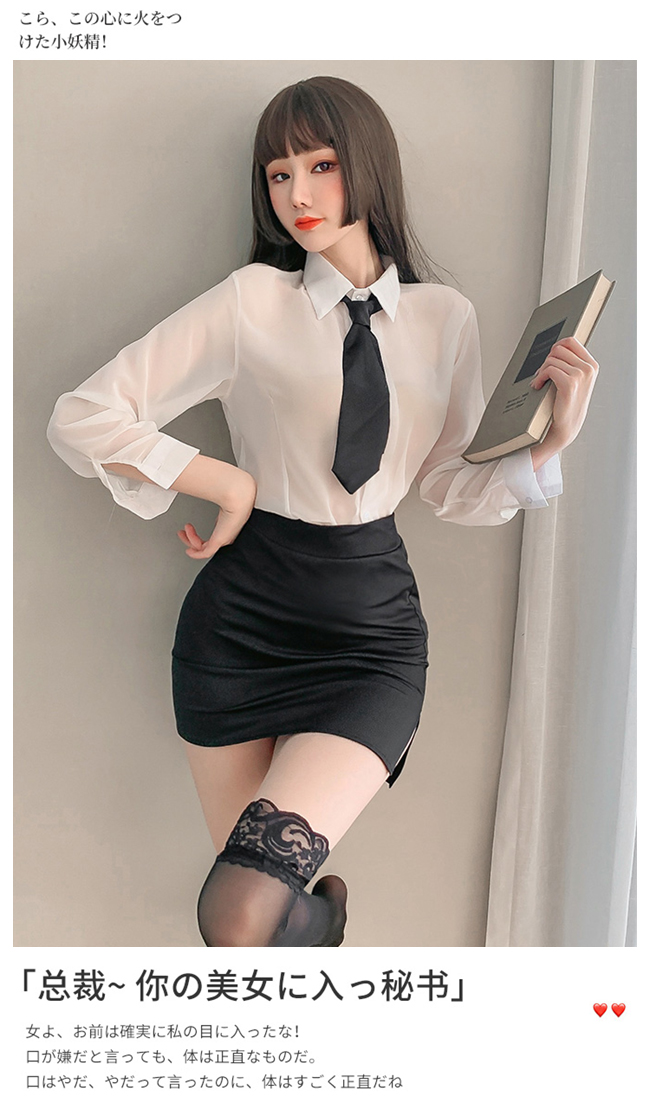 | 秘書角色扮演服!男友風襯衫領帶四件式套裝