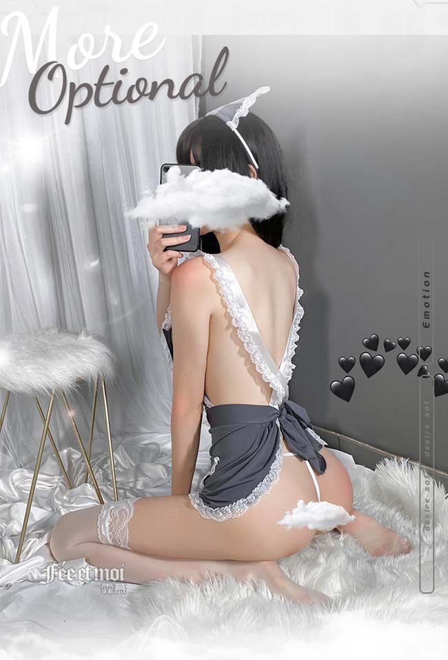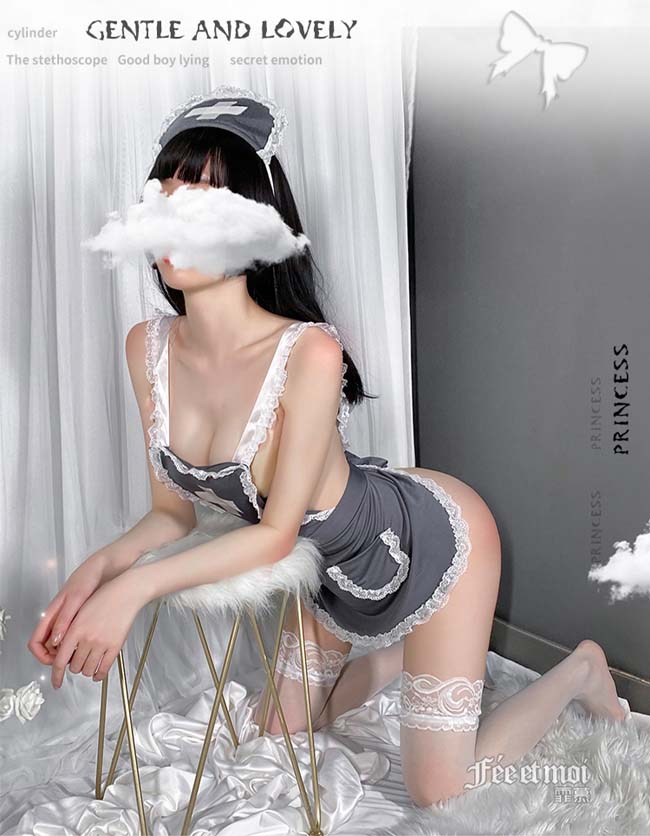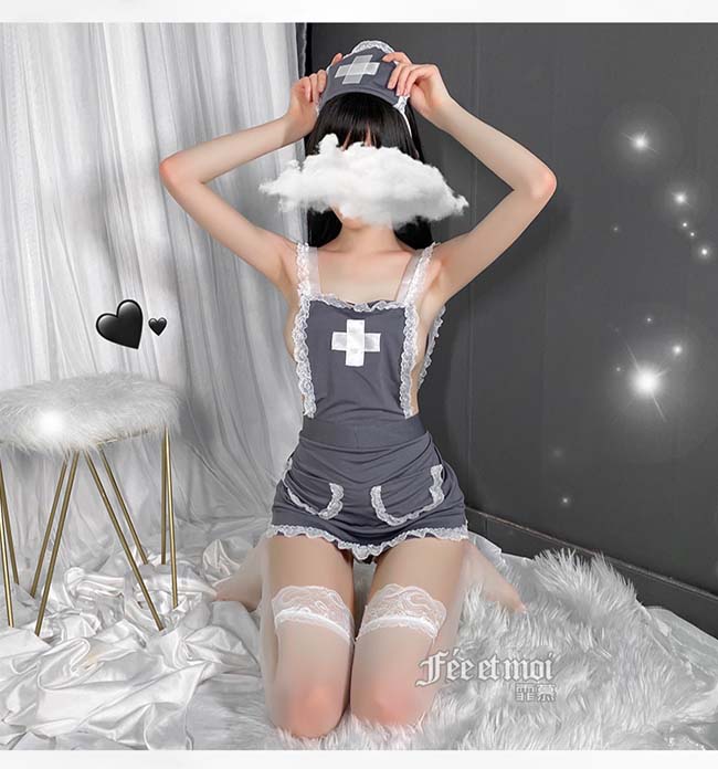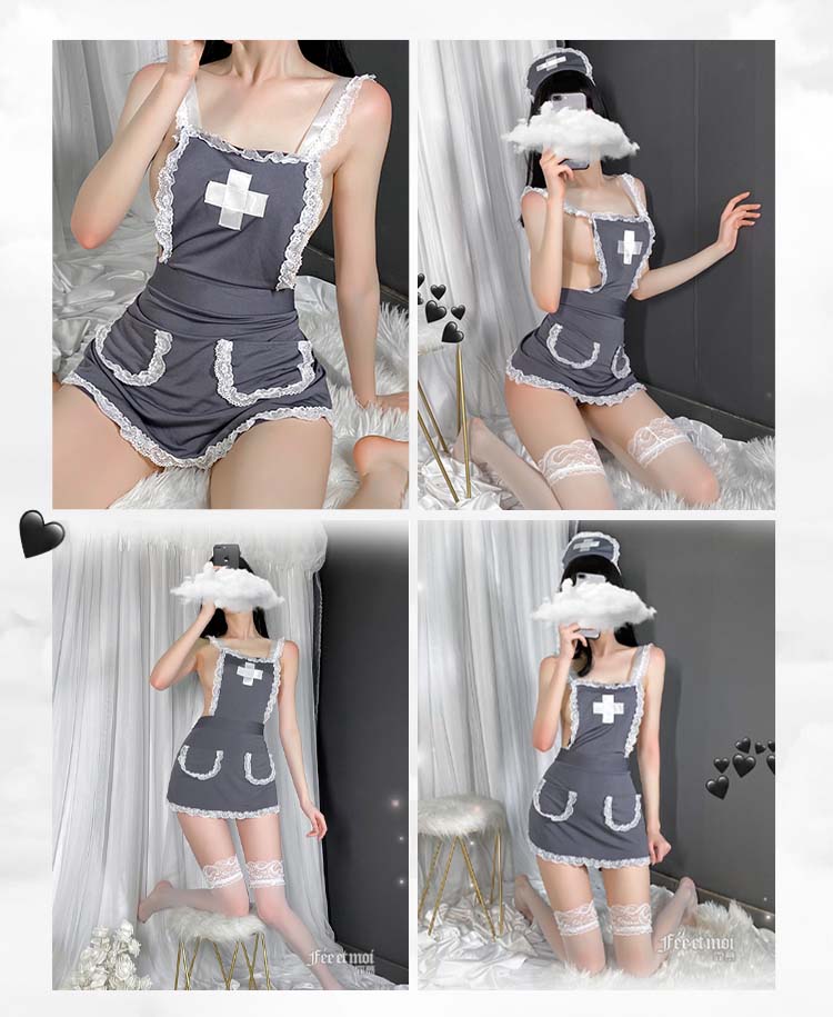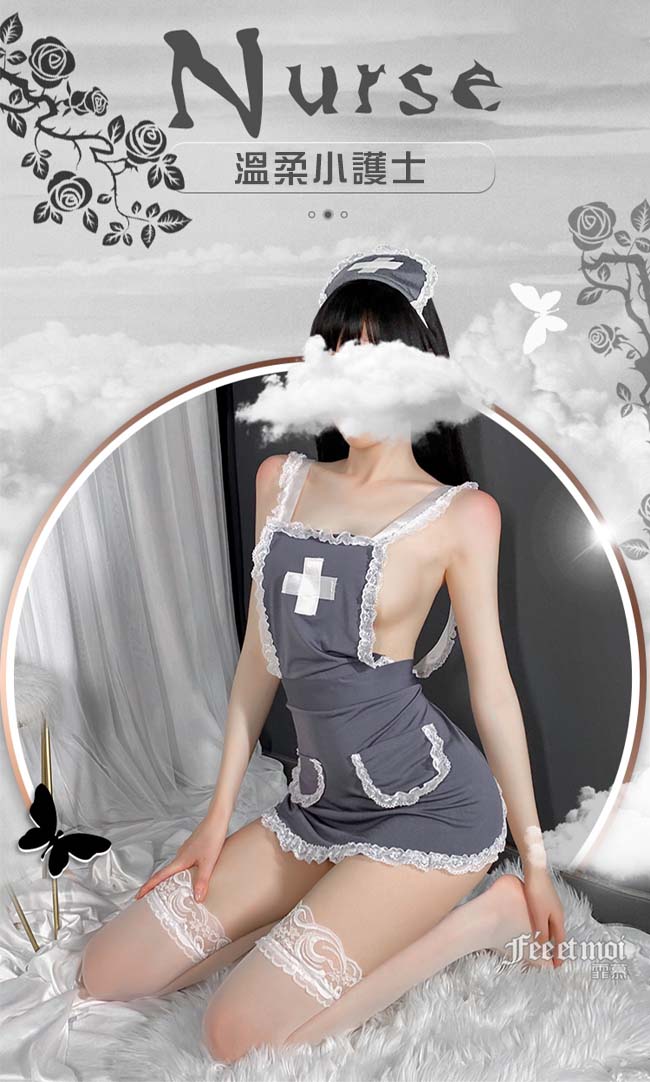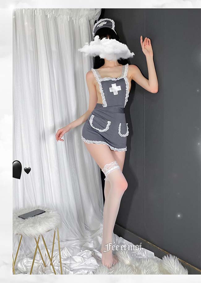 | 《FEE ET MOI》護士角色扮演服!後交叉圍裙式露臀裸背蕾絲滾邊三件組