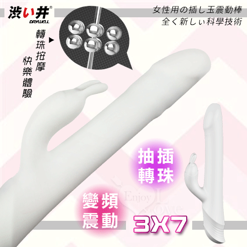 日本Drywell【涉い井】3X7抽插轉珠變頻震動多功能按摩棒 (白色典雅)