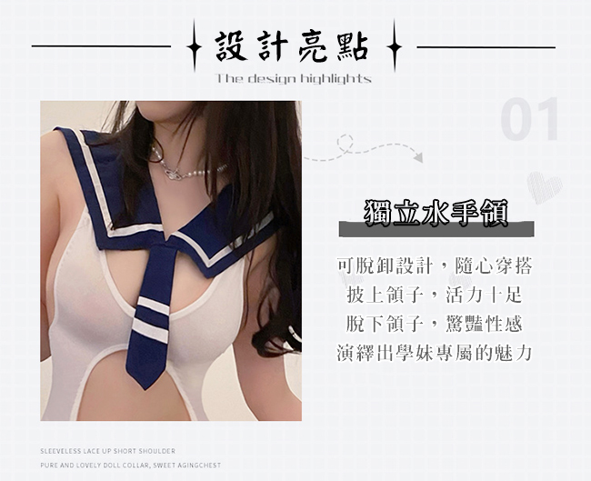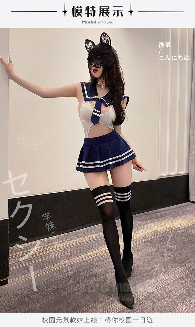 ►您現在的位置:首頁>學生角色扮演服!獨立水手領深U開襠衣百褶短裙四件式套裝