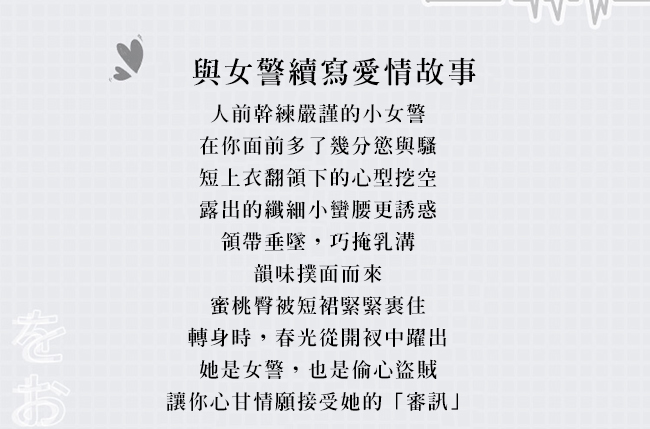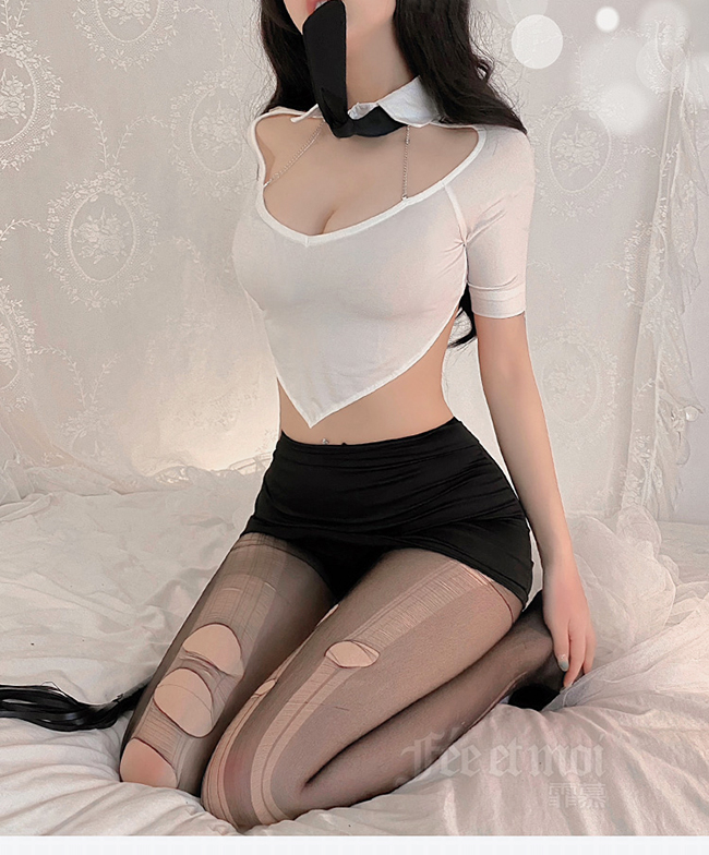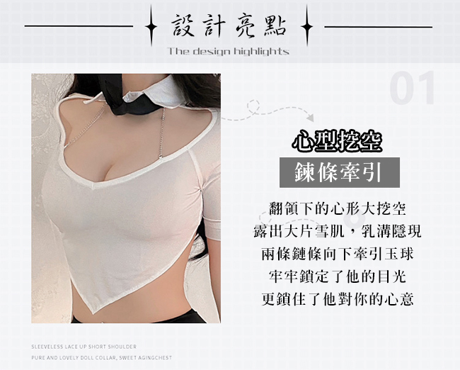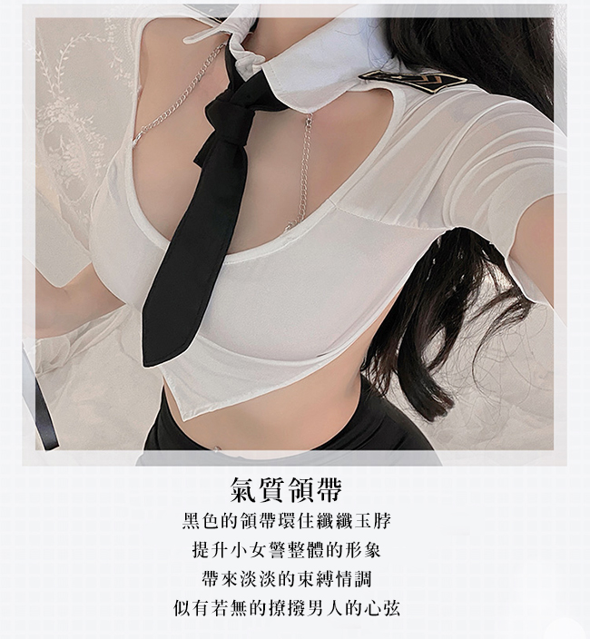 ►您現在的位置:首頁>女警角色扮演服!氣質領帶心型挖空鏈條牽引後開衩短裙六件式套裝-含可撕絲襪