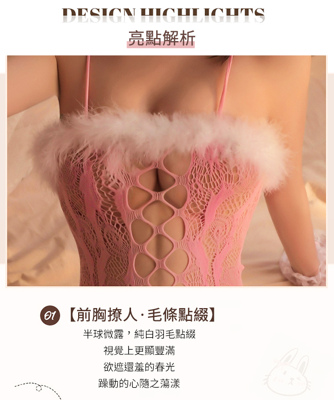 | 兔女郎角色扮演服!柔軟毛毛交叉鏤空滾邊蕾絲可開襠含襪四件式套裝﹝黑﹞