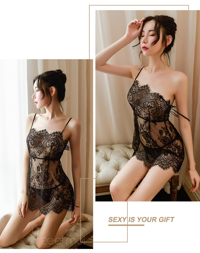 ►您現在的位置:首頁>情趣睡衣!吊帶輕柔蕾絲波浪裙襬後開襟綁帶兩件組﹝黑﹞