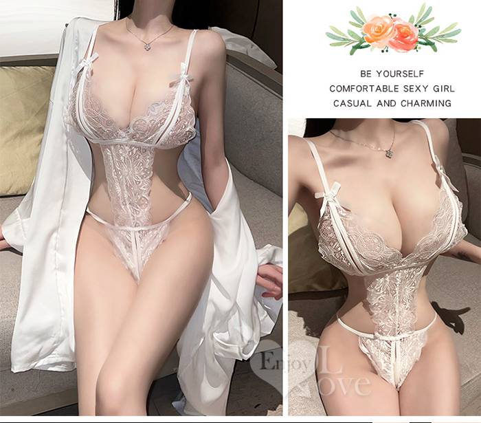 ►您現在的位置:首頁>狂野連身衣!可調節細肩緹花透膚後裸空激情開襠裝﹝白﹞