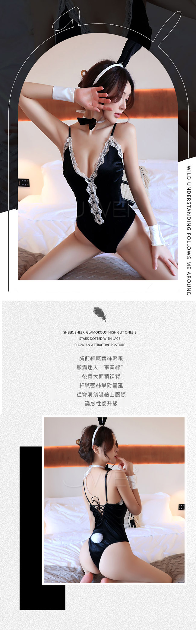 ►您現在的位置:首頁>蜜桃魅影.性感蕾絲深V露背側高叉兔女郎連身衣4件組(粉色)