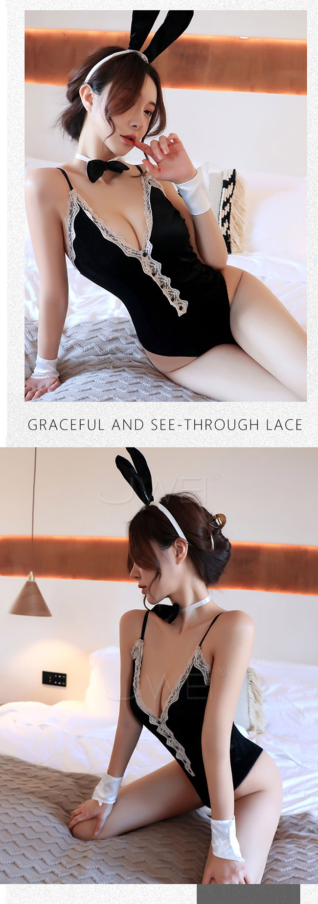 胸前細膩蕾絲輕覆顯露迷人"事業線",