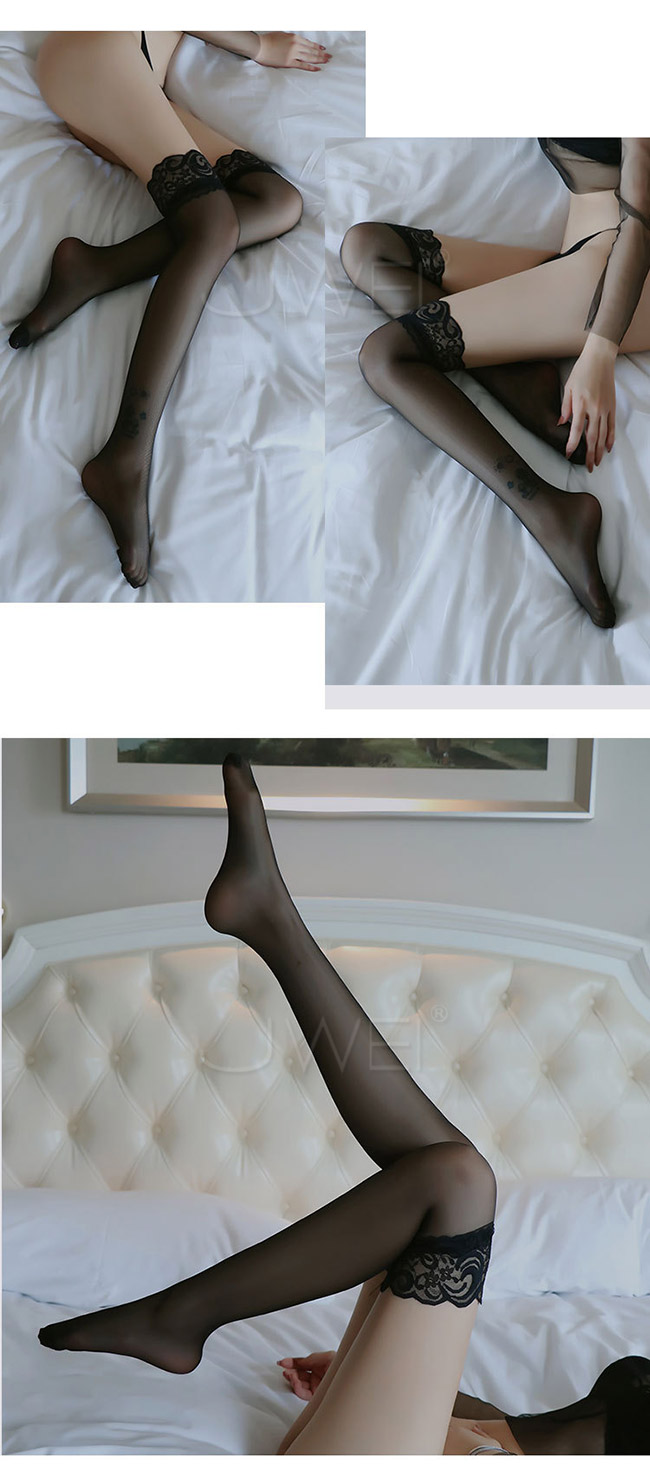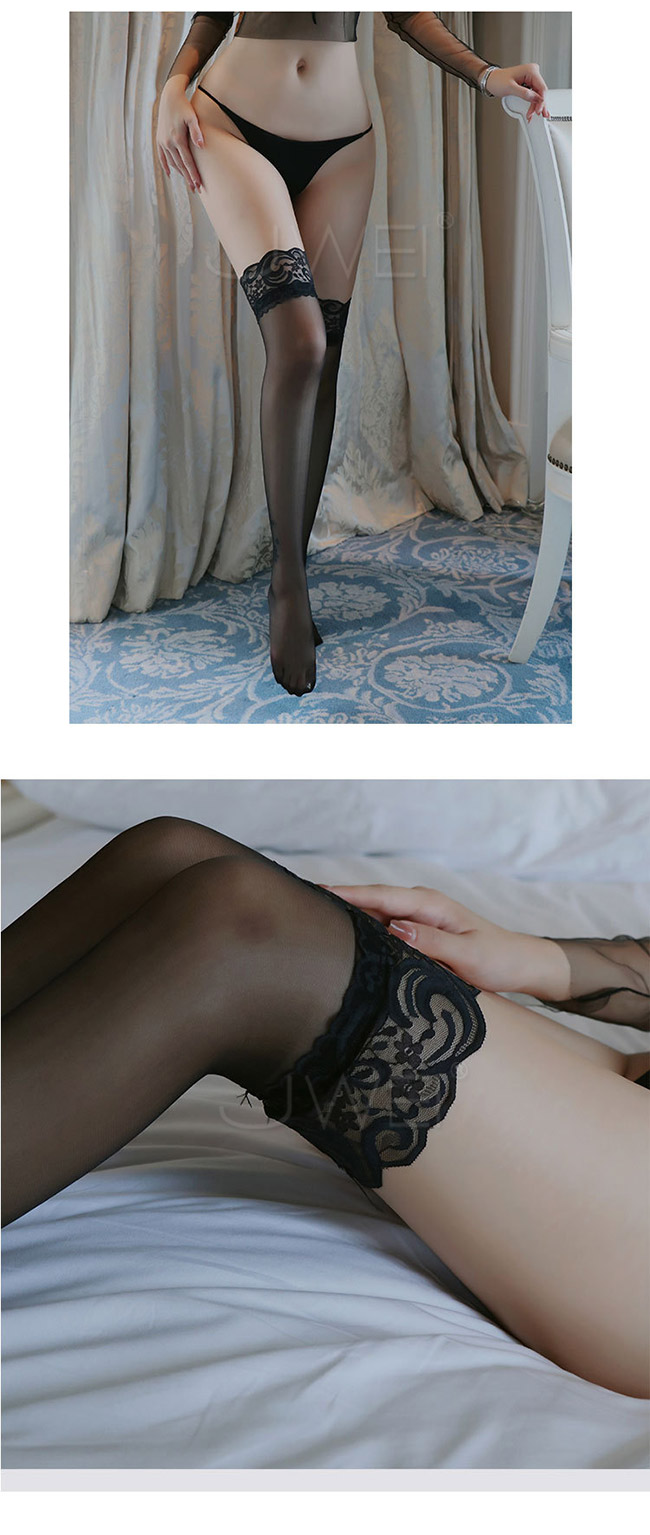 | 神秘面紗.性感蕾絲邊長筒絲襪(黑色)