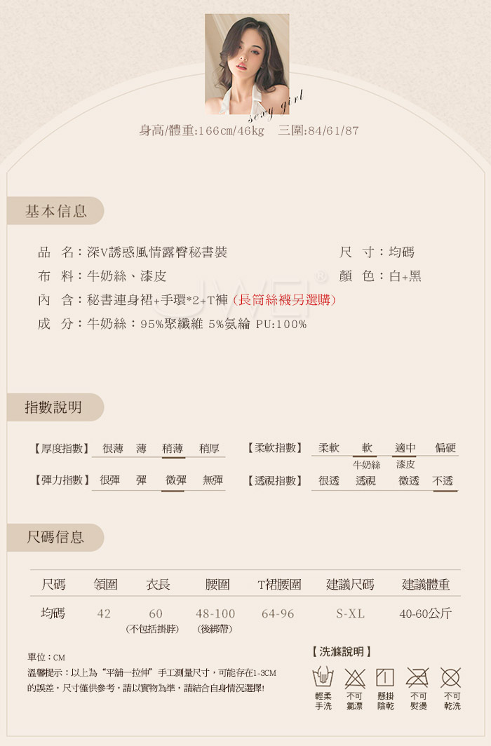 ■內容物:秘書連身裙x1、手環x2、T褲x1(長筒絲襪另選購)