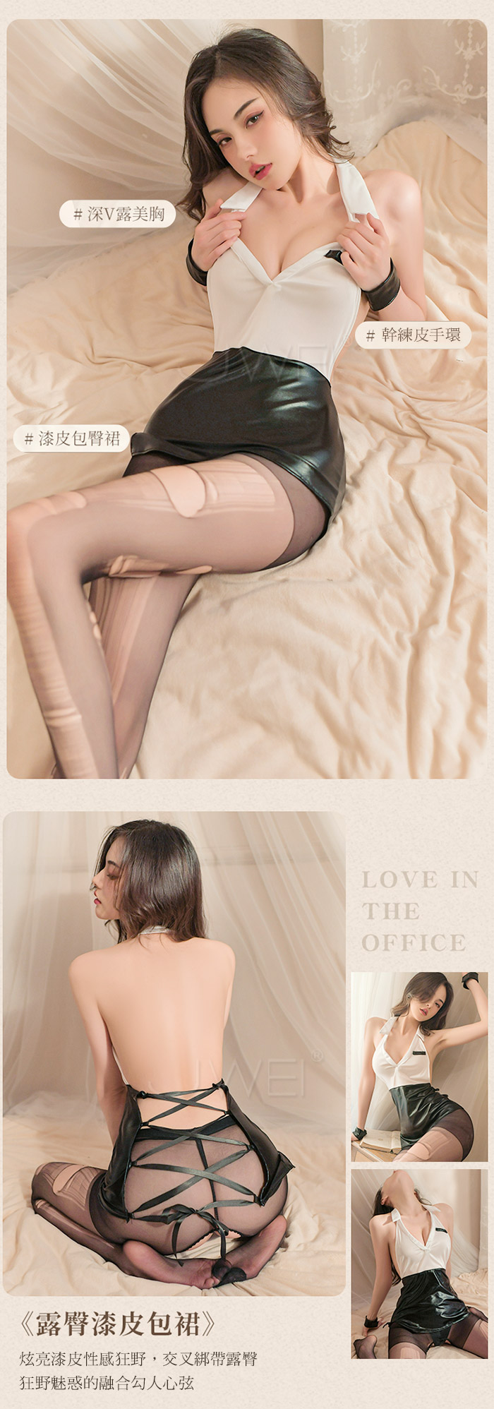 ◇◆職場情緣.無袖小翻領深V誘惑風情露臀秘書裝3件組◆◇