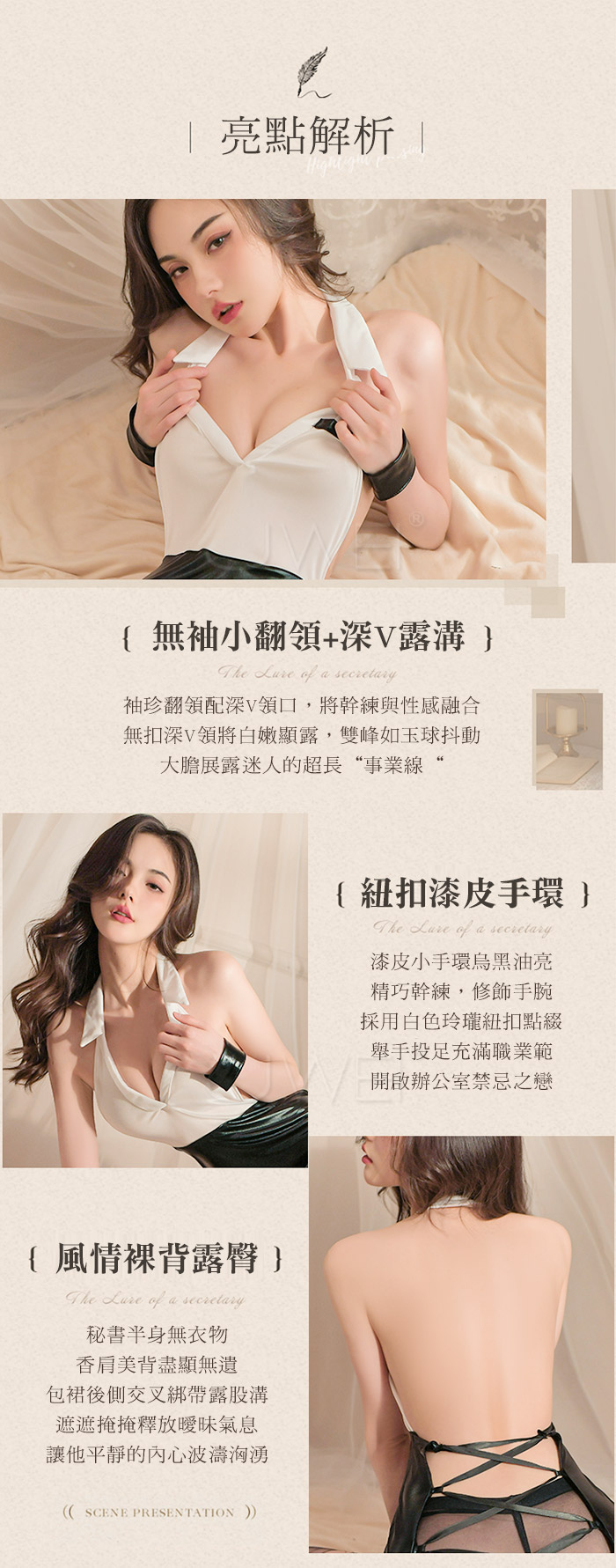 ►您現在的位置:首頁>職場情緣.無袖小翻領深V誘惑風情露臀秘書裝3件組