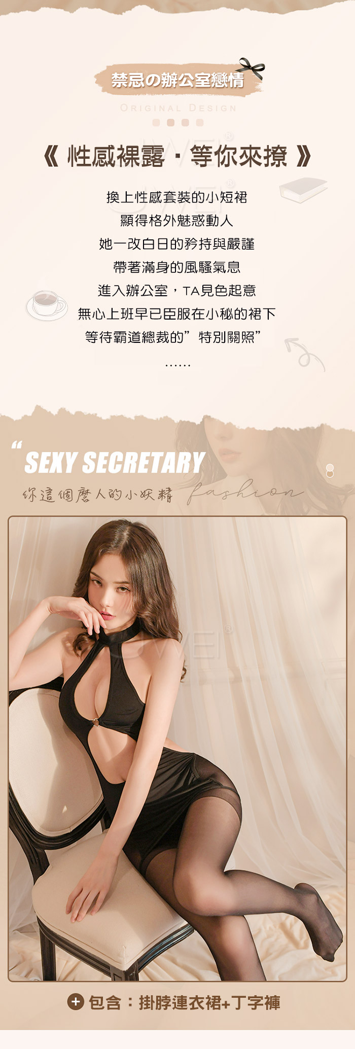 ■內容物:包臀連衣裙x1、T褲x1(絲襪另選購)
