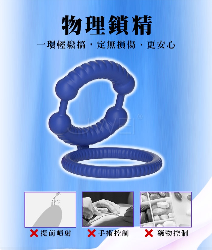 ►您現在的位置:首頁>SEXLOVE .延時雙環扣鎖精套環-藍色