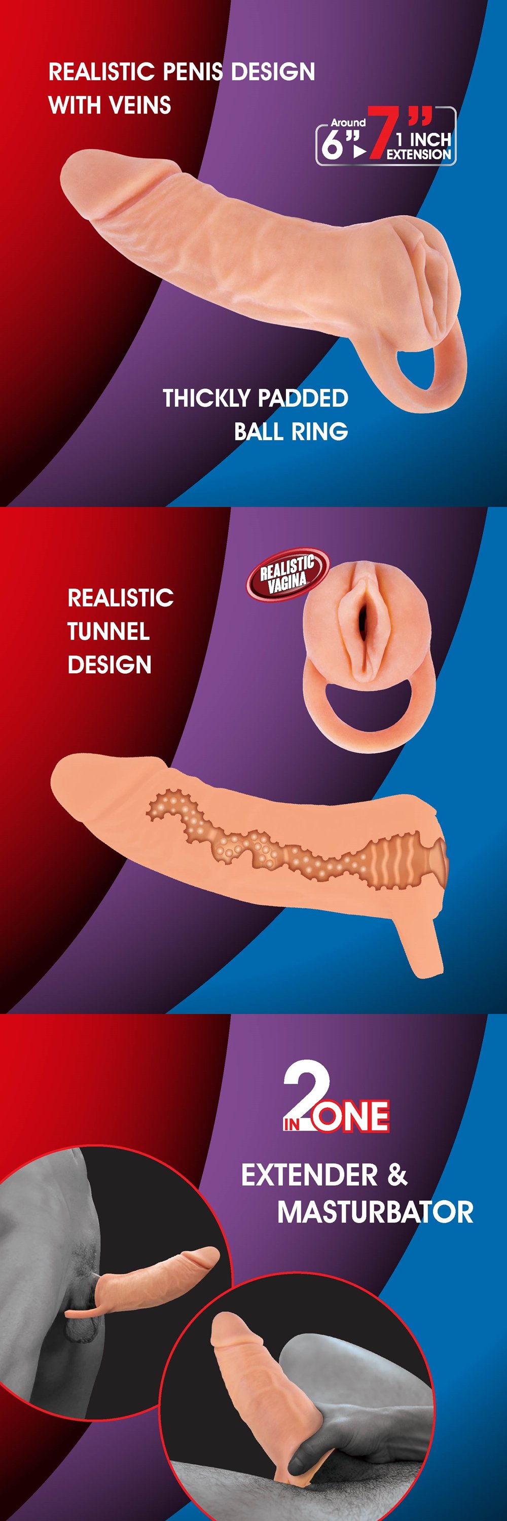 7吋卓越螺紋顆粒2in1增長自慰