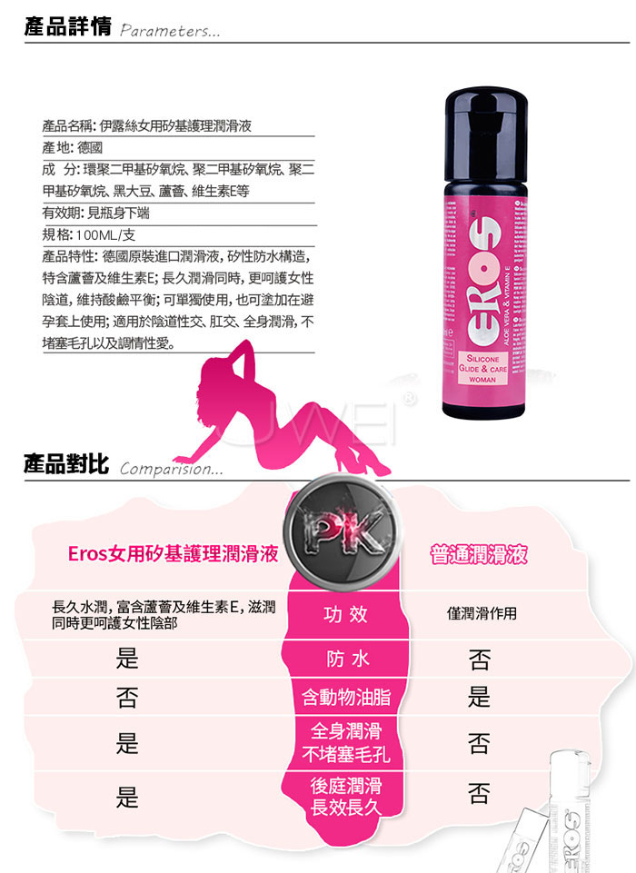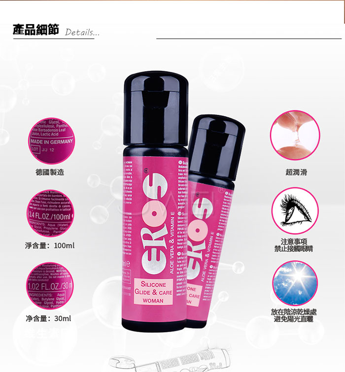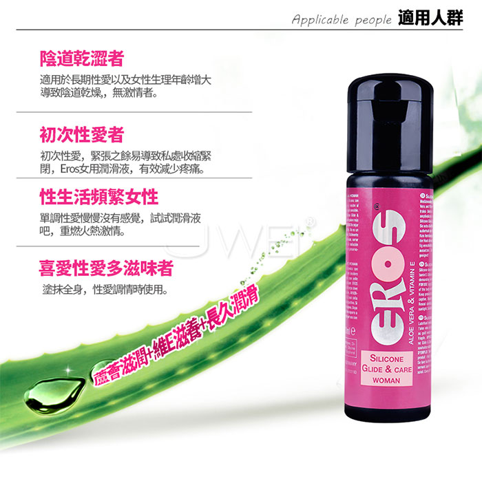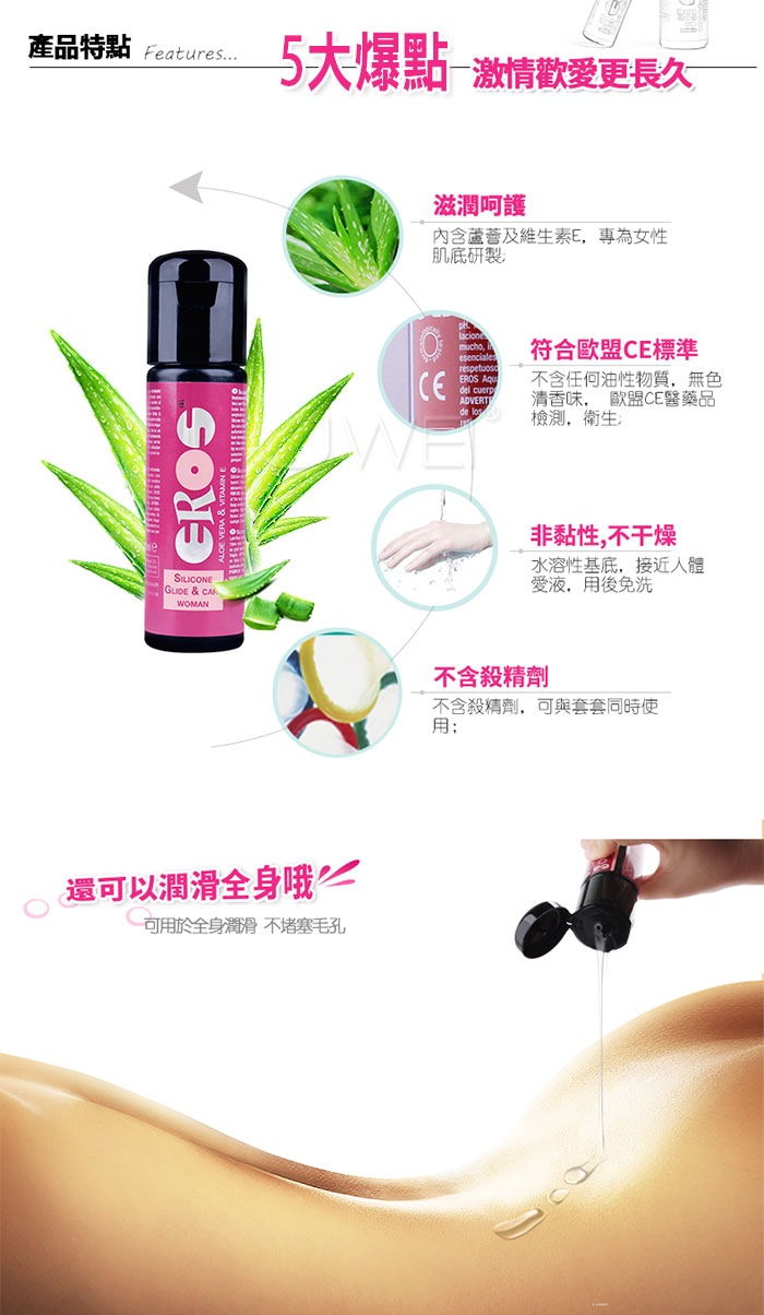 ►您現在的位置:首頁>德國Eros ‧Silicone Glide & Care Woman 高級女用矽基護理保養潤滑油100ML-可平衡陰道PH值