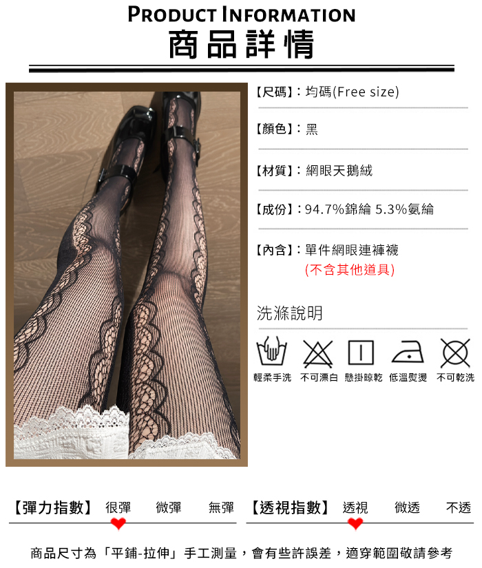 蘿莉塔鏤空蕾絲愛心連褲網襪﹝黑﹞
