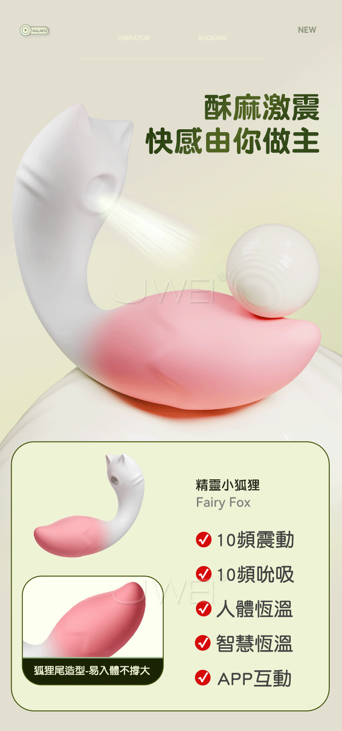 | GALAKU.精靈 小狐狸 10X10 強震+口愛吸吮 APP智控加溫多重體驗穿戴G點按摩器