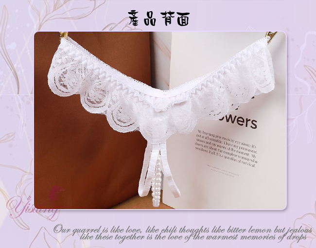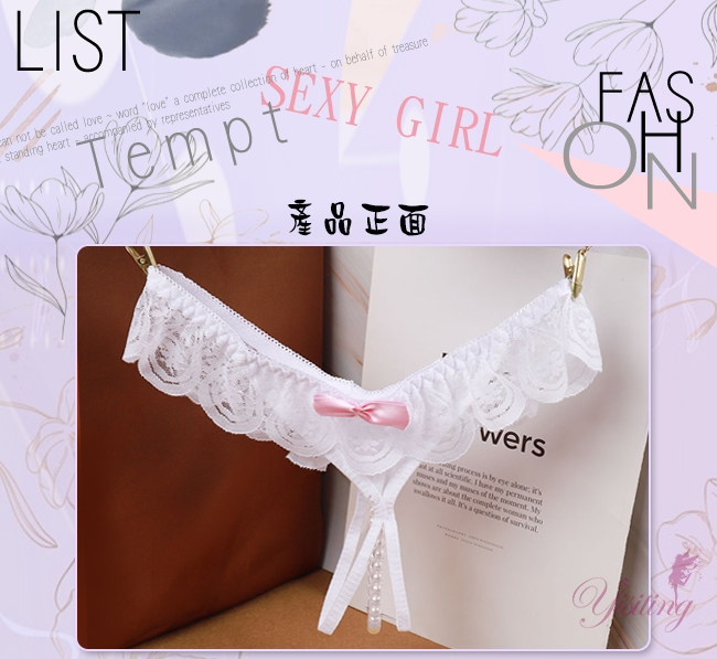 | 完美挑逗!蕾絲花邊露屁屁串珠開襠低腰褲﹝白﹞