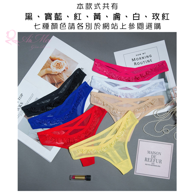 ►您現在的位置:首頁>溫柔暗號!前交叉細帶滾邊蕾絲網紗中腰T字褲﹝膚﹞