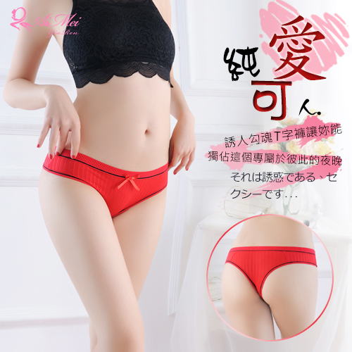 | 純愛可人!低腰直條壓紋美臀T字褲﹝紅﹞