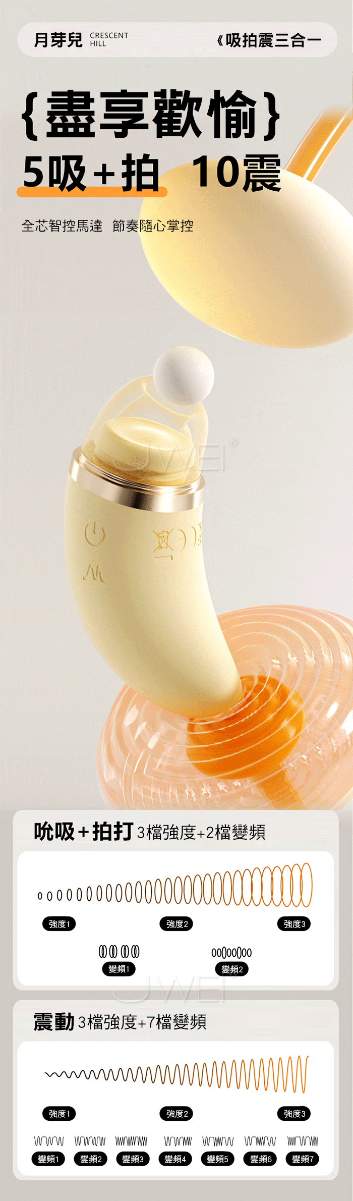 吸拍震三合一,傾刻潮湧,小嘴吮吸+拍打C點 尾部入體震顫U點